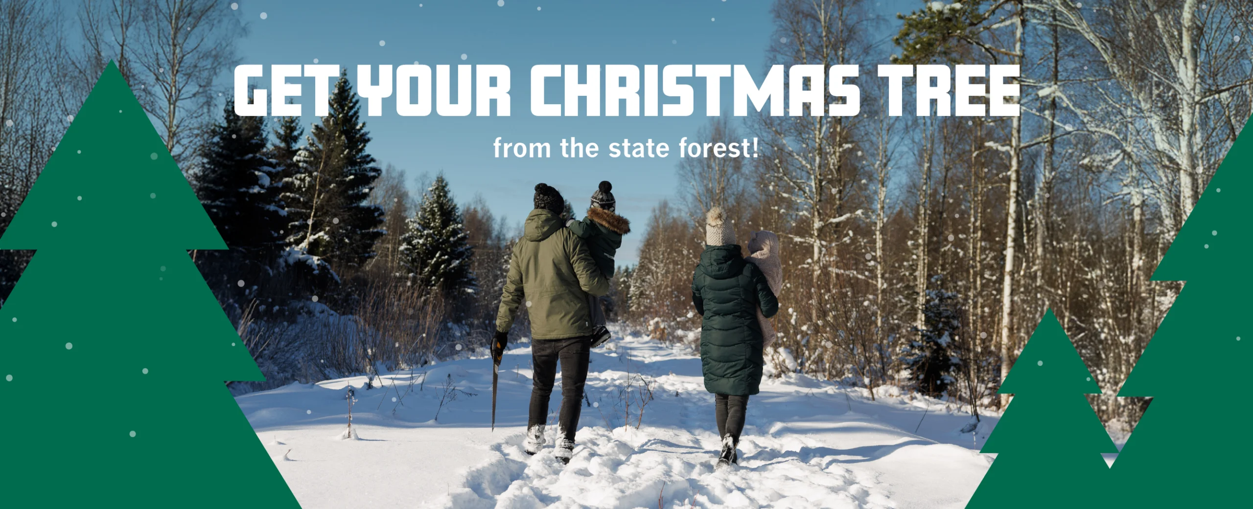 The state forests, where you can go to find your Christmas tree, are marked in dark green on the map.
