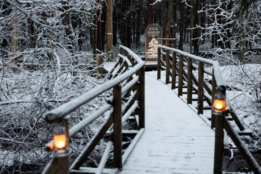 see on just sobilik aeg ühiseks metsaretkeks! Pane jalga ilmastikukindlad riided ja jalanõud ning tee lähemalt tutvust Eestimaa loodusega. Matka metsas ja rabas või roni vaatetorni. 12 RMK külastuskeskuse juures särab praegu ka salapärane talvevalgus.