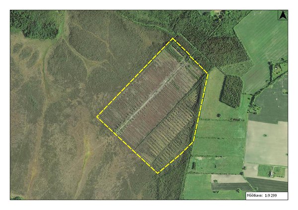 Maima jääksoo 2019. a sügisel. Kuivenduskraavid toimivad, taimestik on kasin ka aastakümneid peale kaevandamise lõppemist.